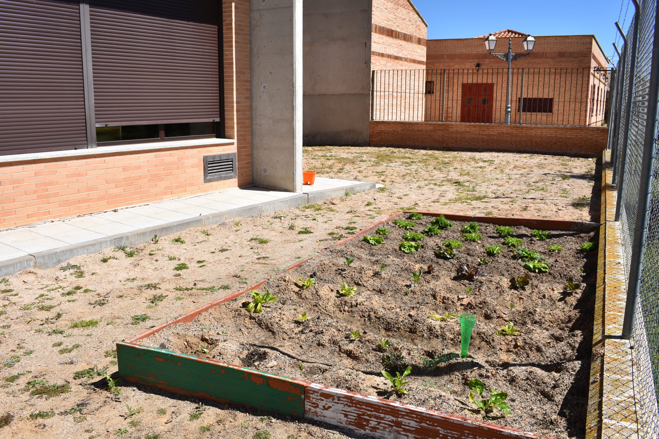 En la zona del arenero se localiza el huerto escolar donde el alumnado trabaja y aprende viendo el proceso del cultivo desde su plantación hasta su recolección.