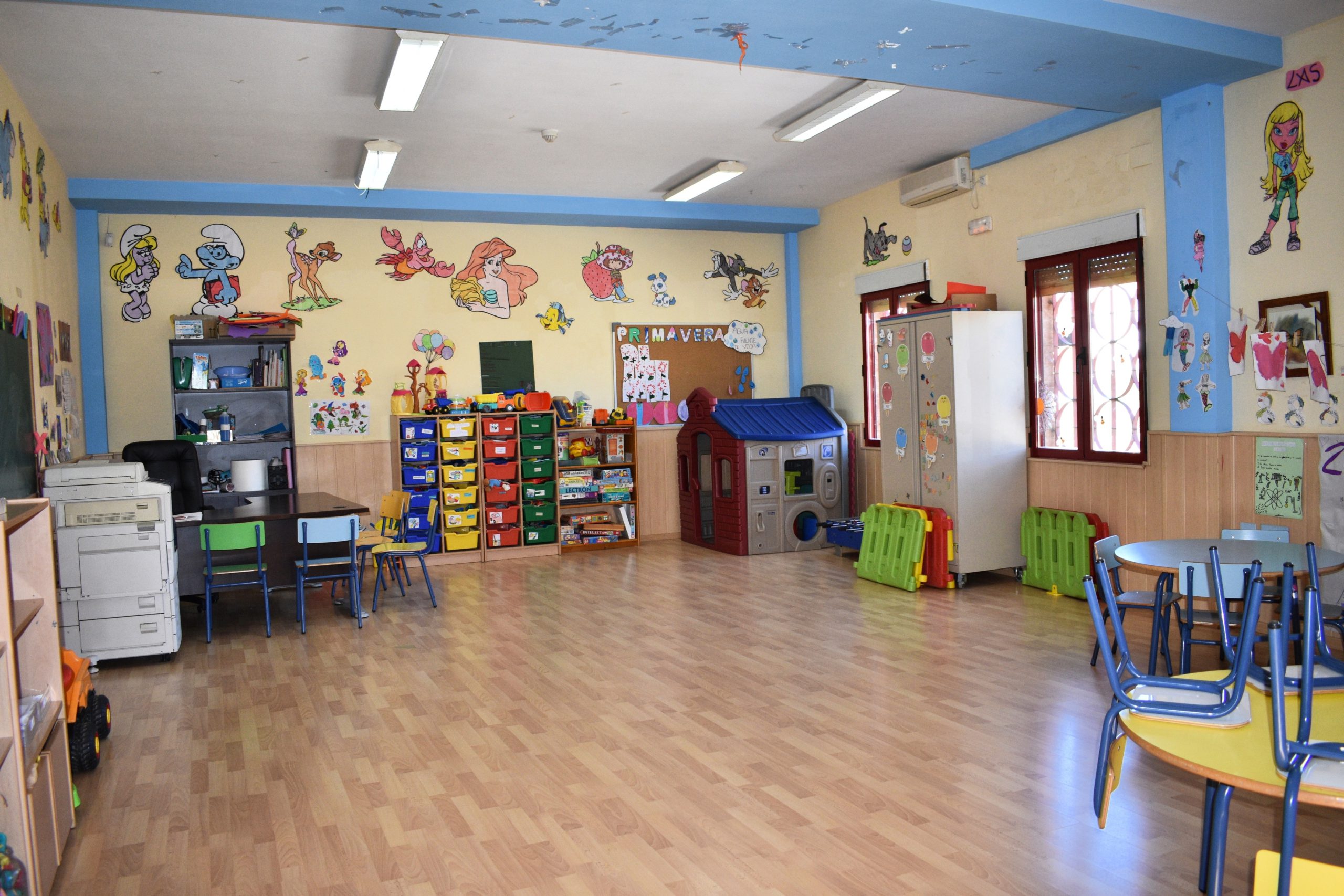 Dispone de 4 clases que quedan divididas de la siguiente manera: una clase para infantil, otra para la clase de 1º, 2º y 3º, otra clase para los cursos de 4º,5º y 6º y una última clase para los alumnos de PT y AL. Además, cuenta con otro espacio habilitado para actividades del centro, una biblioteca y varios despachos.