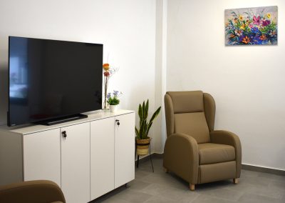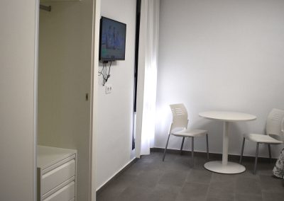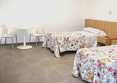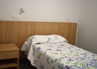 El edificio está dotado de ocho habitaciones, dos de ellas dobles, todas con baño propio habilitado para personas mayores, con cama articulada, armario empotrado y tv individual.